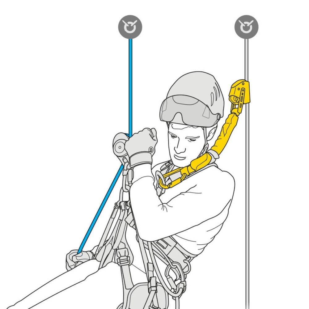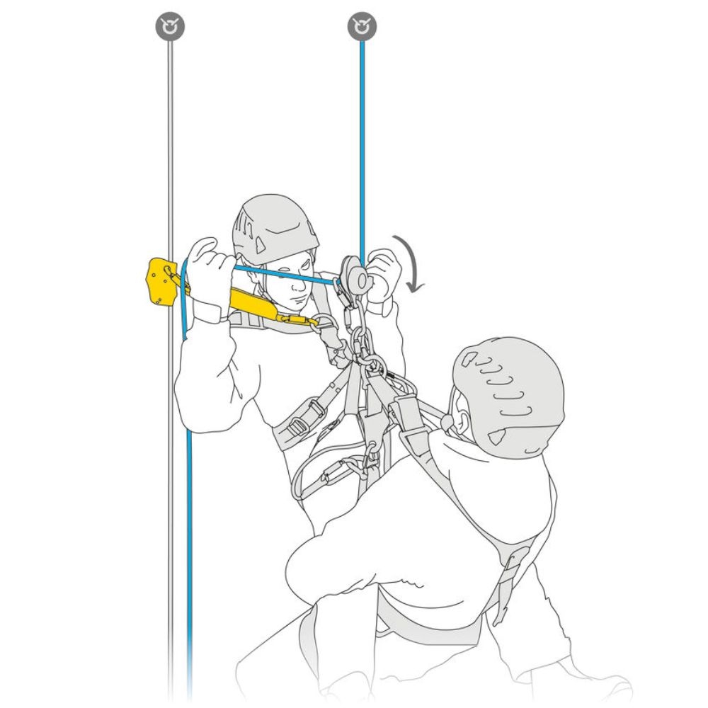 Sa conception permet une utilisation en situation de secours à deux personnes, avec une charge admissible allant jusqu’à 250 kg, tout en limitant efficacement la force de choc transmise en cas de chute. Les extrémités sont dotées de STRING, assurant un bon maintien des connecteurs et une protection optimale contre l’usure de la sangle.