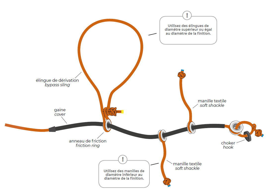 Il permet : la connexion entre le câble de débardage de la manille textile et/ou la mise en place d'une élingue de dérivation.