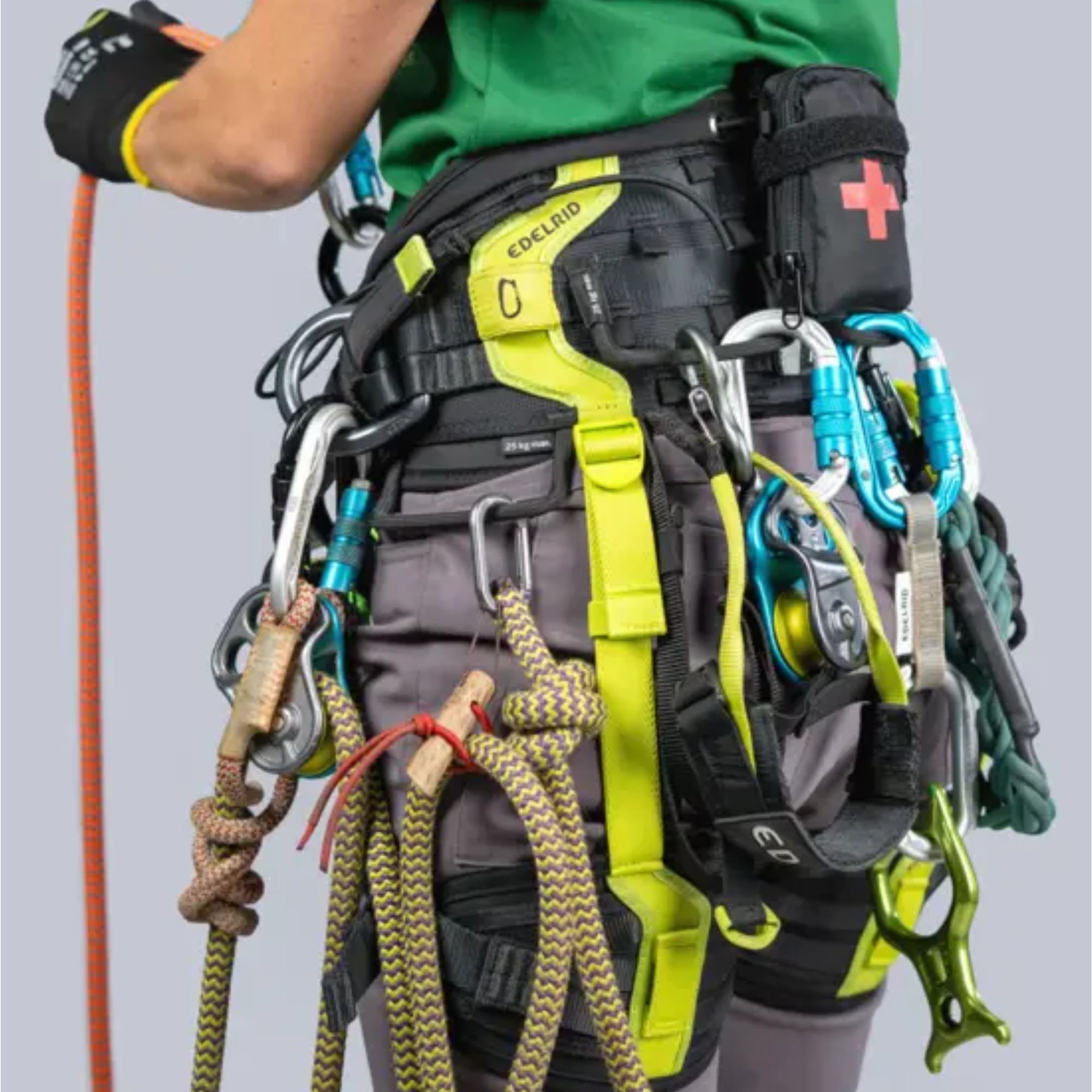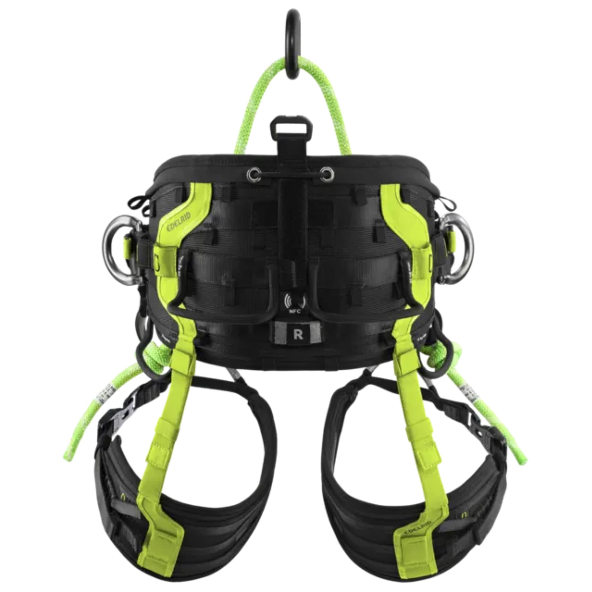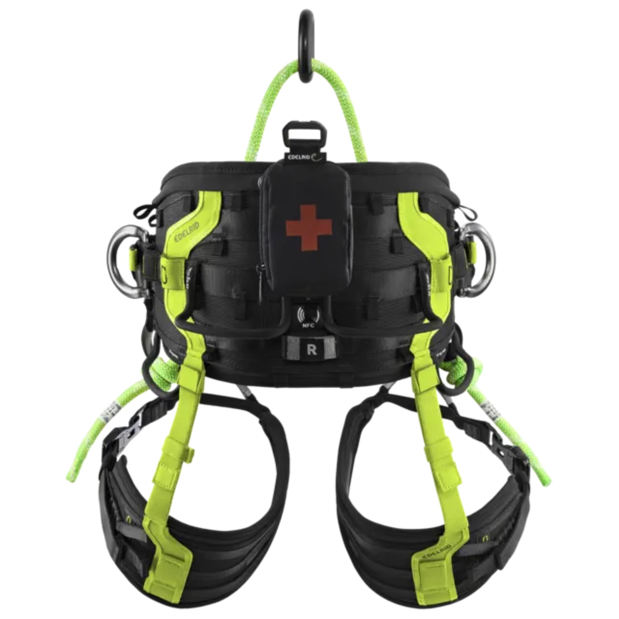 Deux ponts colorés, un anneau de butée, une trousse de secours intégrée, une option de pont SRT et une liaison NFC font partie de l’équipement standard. Le système Bungee-Tool intégré vient compléter l’ensemble pour garantir une organisation optimale en hauteur.
