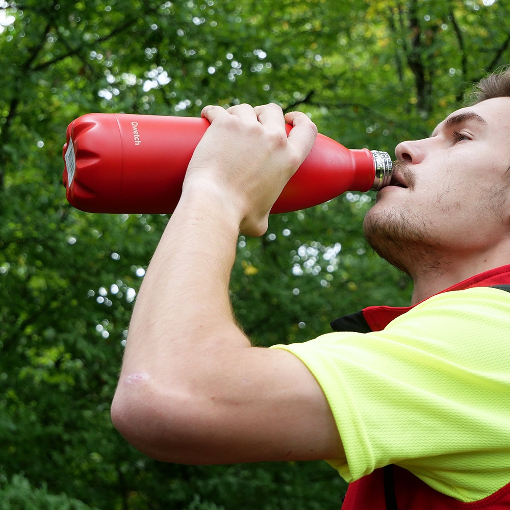 La bouteille QWETCH 1L repose sur une double paroi en inox 304 (18/8), un matériau reconnu pour sa résistance et sa neutralité gustative. Grâce à l’isolation sous vide, elle empêche toute condensation extérieure et conserve efficacement la température initiale de vos boissons.