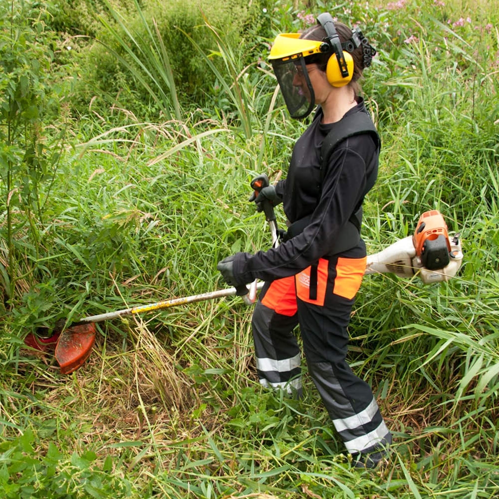 Sur le terrain, ce casque s'adapte parfaitement aux travaux de débroussaillage en sous-bois, d'entretien d'espaces verts ou de nettoyage de parcelles. Sa conception légère réduit la fatigue cervicale lors des journées de travail prolongées.