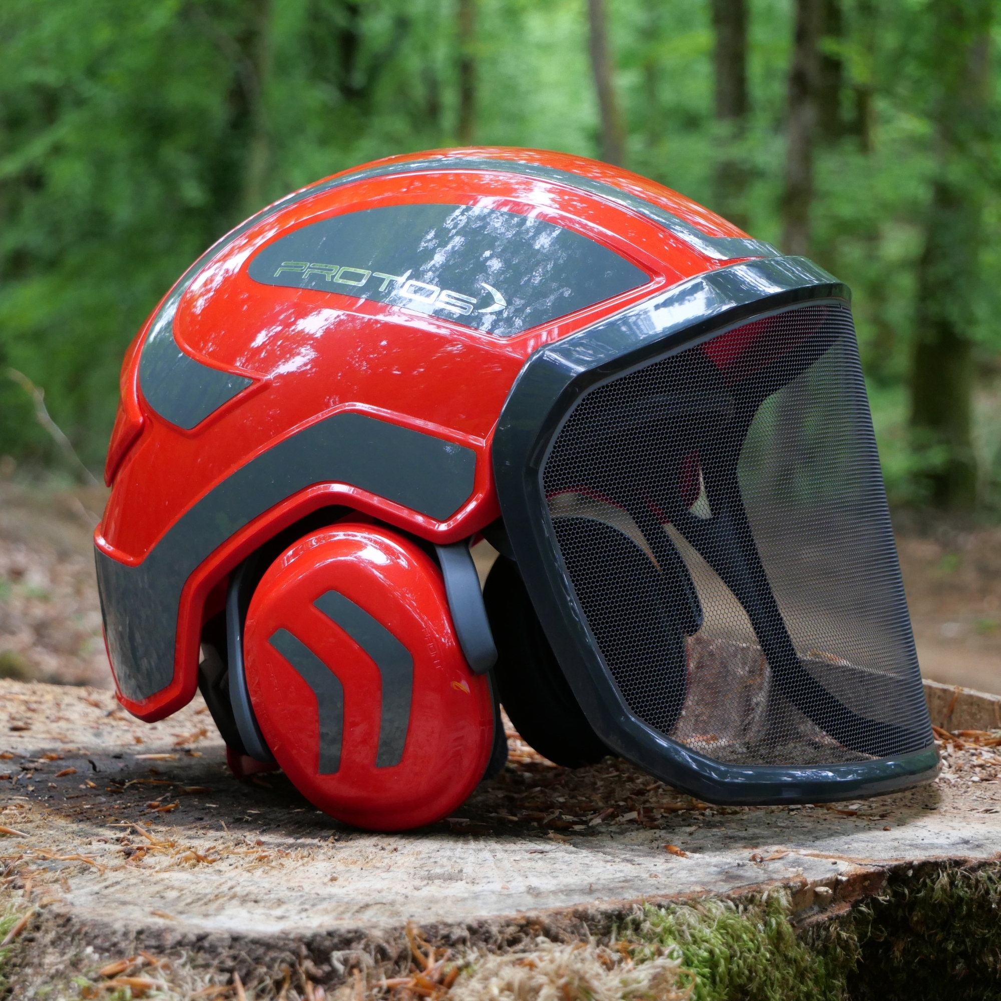 Le casque PROTOS Integral Forest Rouge & Gris est équipé d’une visière métallique F39, conçue avec un maillage fin de 39 ouvertures par cm², permettant une excellente visibilité tout en protégeant des éclats et débris forestiers. Il intègre également un protège-nuque enveloppant et des coquilles antibruit intégrées offrant une atténuation sonore de 26 à 27 dB.
