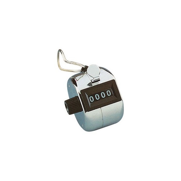 A 4 chiffres avec remise à zéro grâce à une molette sur le côté, permet de compter de 0 à 9999. En chrome. Avec anneau pour l'attacher à la ceinture.