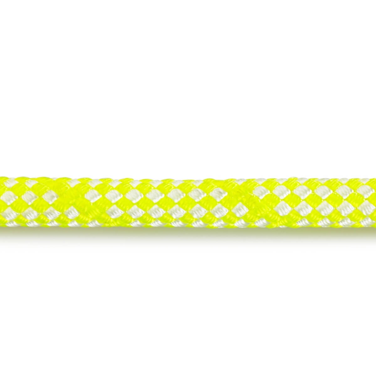 Cette conception offre à la corde un poids de 185 g/m tout en étant résistante puisqu'elle dispose d'une résistance à la rupture de 6300 daN (6424 kg) et avec épissure d'une résistance avant la rupture de 5350 daN (5455 kg) !