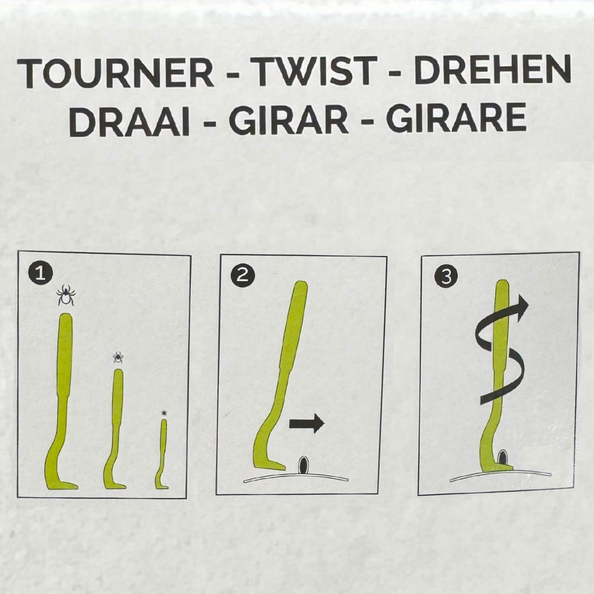 La simplicité d'utilisation du TICK TWISTER est l'une de ses forces majeures. Contrairement aux méthodes traditionnelles, il n'est pas nécessaire d'utiliser des substances comme l'éther ou l'alcool, qui peuvent en réalité aggraver le risque d'infection en provoquant un reflux des fluides de la tique dans l'organisme.