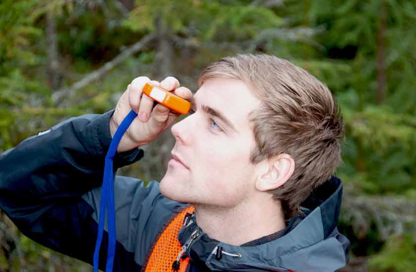 Fini les lectures d'échelles compliquées et les calculs complexes par la suite. Laisser l'instrument faire le travail. Appareil électronique utilisé pour la mesure des angles en degrés et des hauteurs en mètre, au décimètre près. Poids < 20g avec sa pile. Pile fournie. Coque de l'appareil orange pour éviter de le perdre en forêt.
