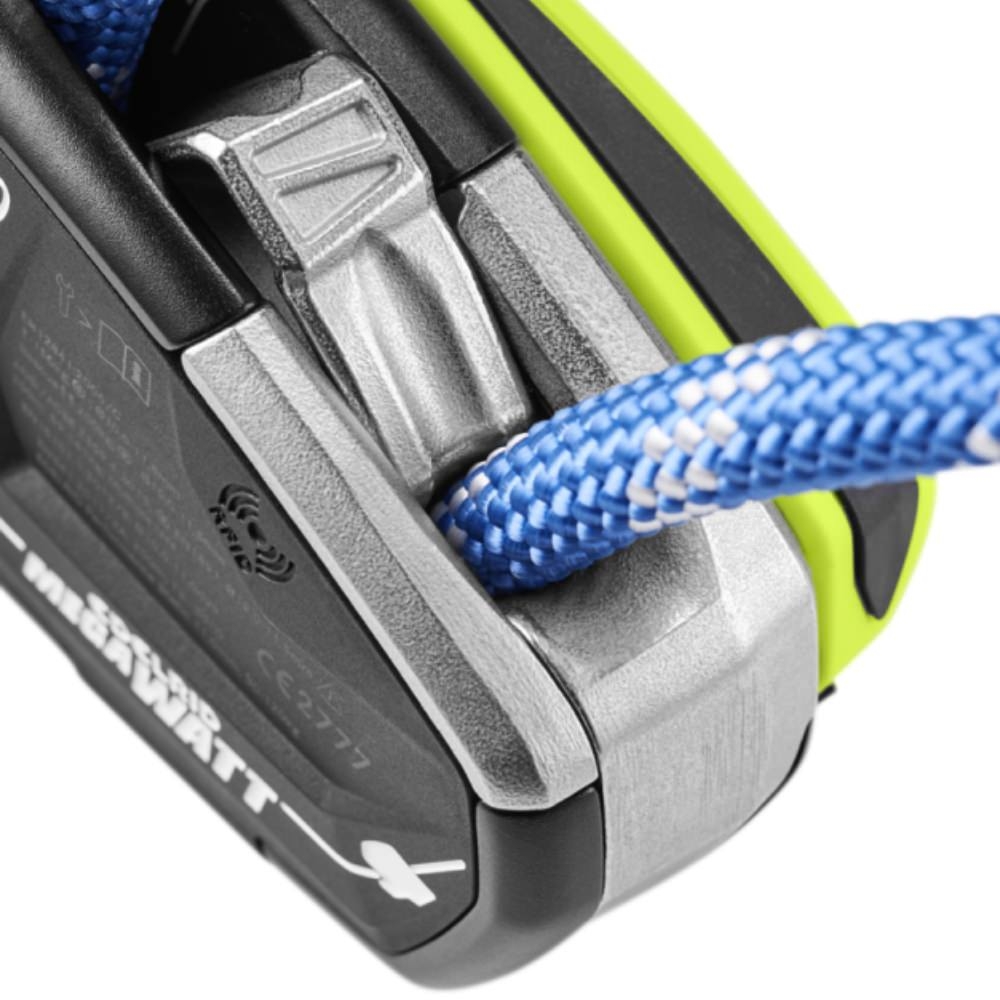 Le MEGAWATT ne pèse que 495 g, tout en offrant une capacité de charge jusqu’à 230 kg, adaptée aux interventions avec matériel ou en sauvetage. Compatible avec des cordes de 8,9 à 11,8 mm, il assure une descente fluide et sans à‑coups, avec une force de contrôle optimale grâce à son levier ergonomique à inserts en caoutchouc.