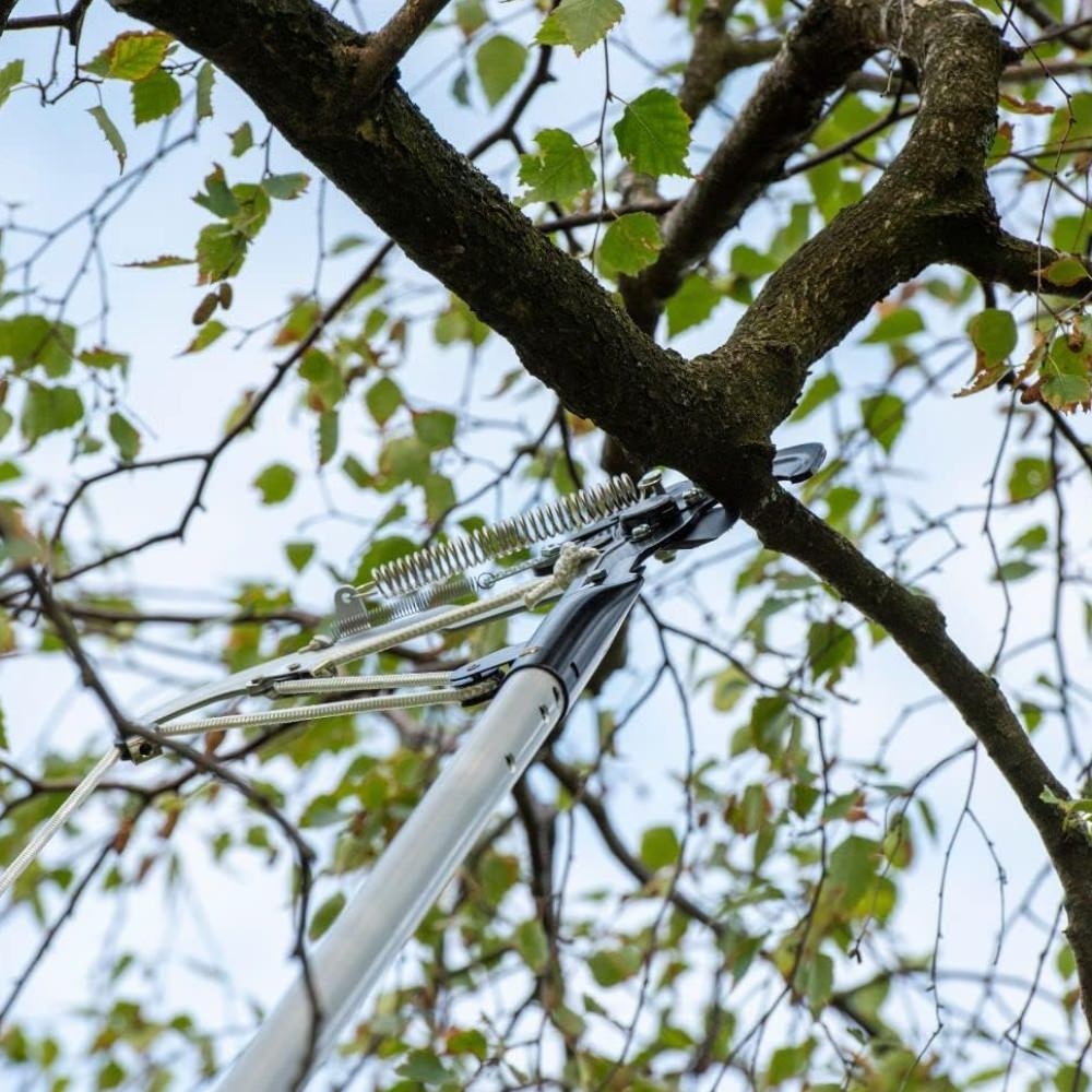 Grâce à sa lame à enclume renforcée, l’échenilloir tranche proprement les branches jusqu’à 40 mm de diamètre, même sur du bois dur. Son système de démultiplication par galets, semblable à un palan, multiplie la force de traction et assure une coupe souple, maîtrisée, et sans à-coup.