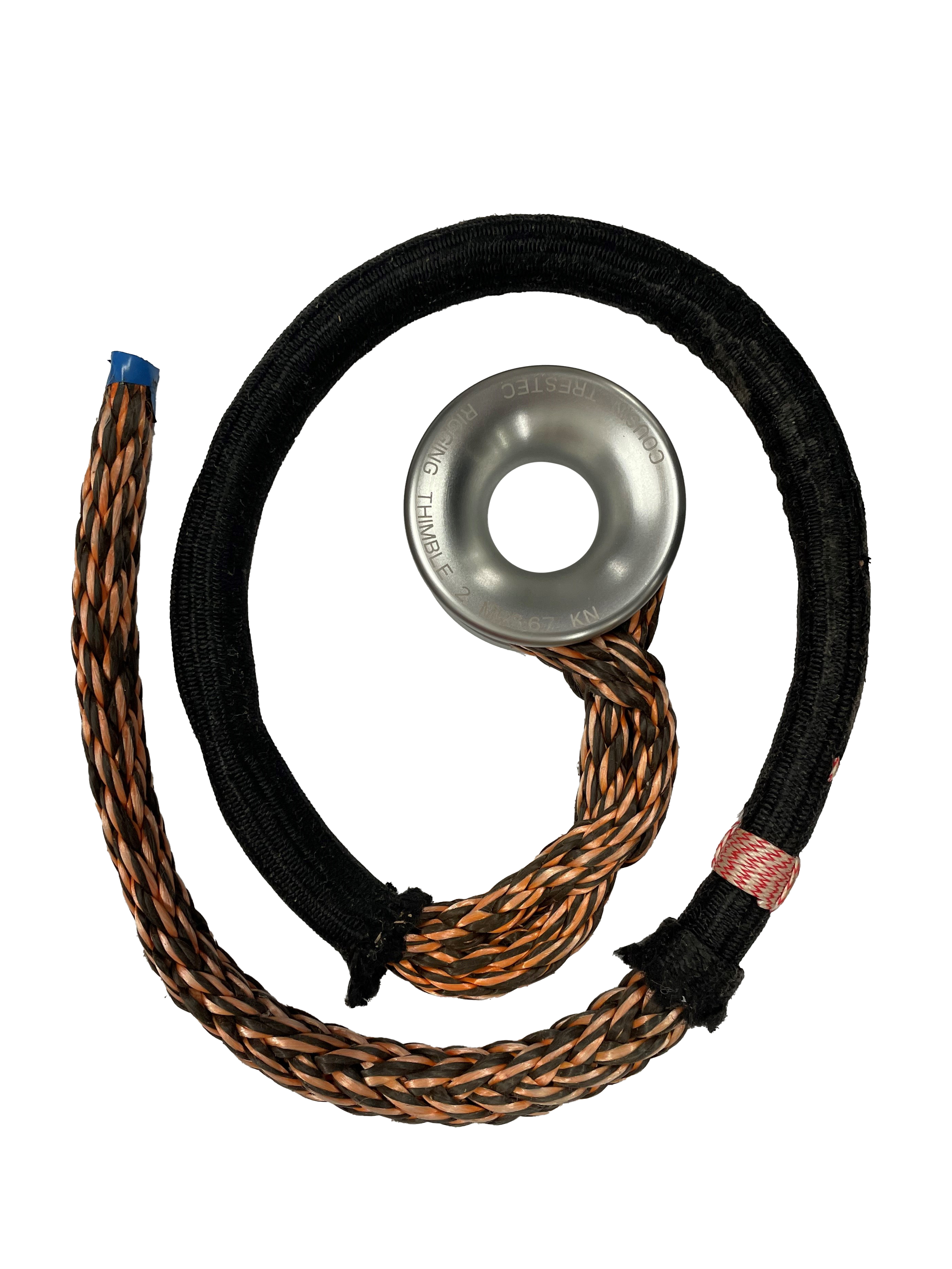 Elingue de rétention de diamètre 14 mm avec anneau de friction intégré. Tressage 12 fuseaux bi-matière sur la base du câble Sequorope.