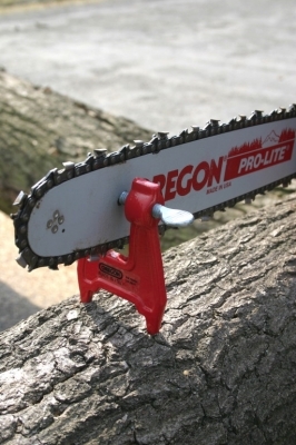 Pour l'affûtage en forêt ou sur chantier. Il se plante sur une souche ou sur une grume grâce à un merlin ou une massette. Il permet de fixer la tronçonneuse par le guide afin de procéder facilement à l'affûtage.