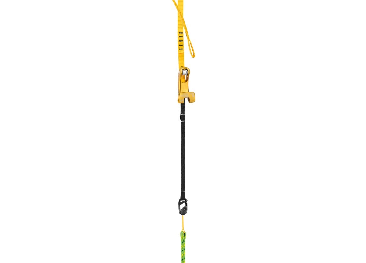 Sa sangle plate est développée spécialement pour ne pas abîmer l'arbre, dans un coloris jaune PETZL haute visibilité.
