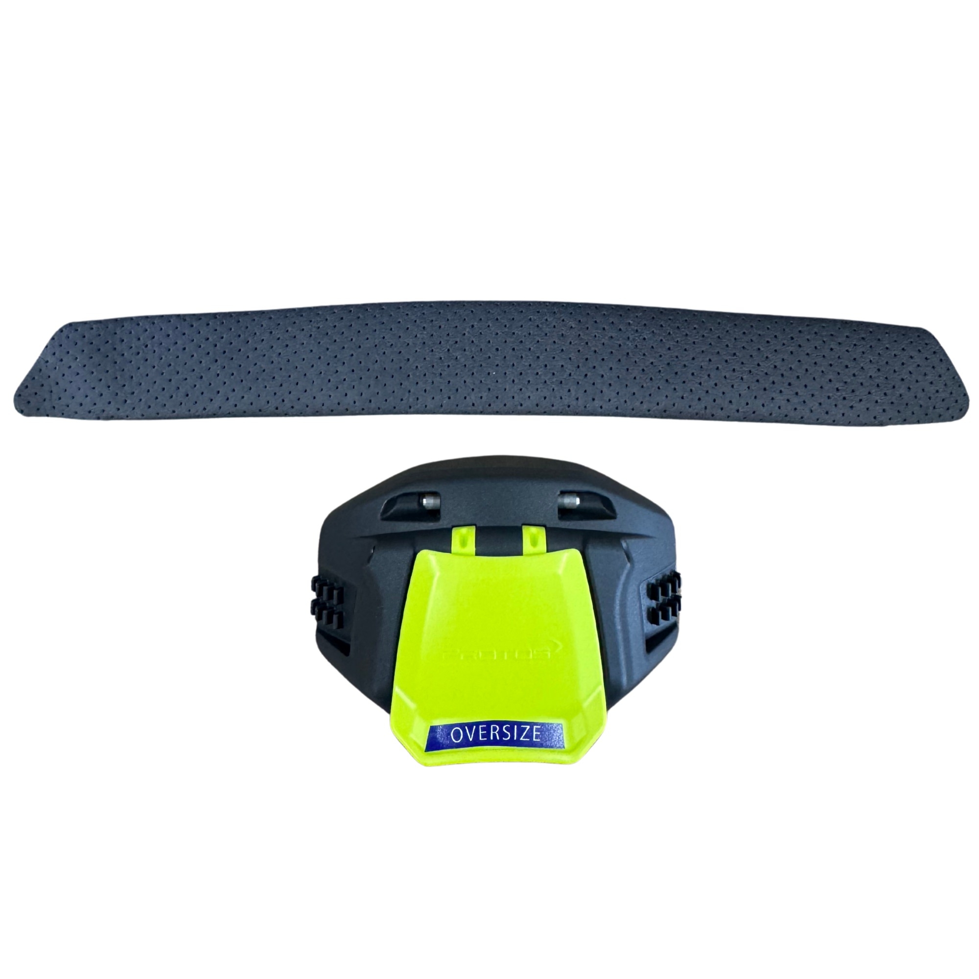 Le protège-nuque Oversize Protos a été conçu pour offrir une plage d’ajustement étendue de 56 à 64 cm, idéale pour les utilisateurs dont le tour de tête dépasse les dimensions standards. Il remplace le module classique prévu pour les tailles de 54 à 62 cm, tout en conservant l’équilibre parfait du casque.