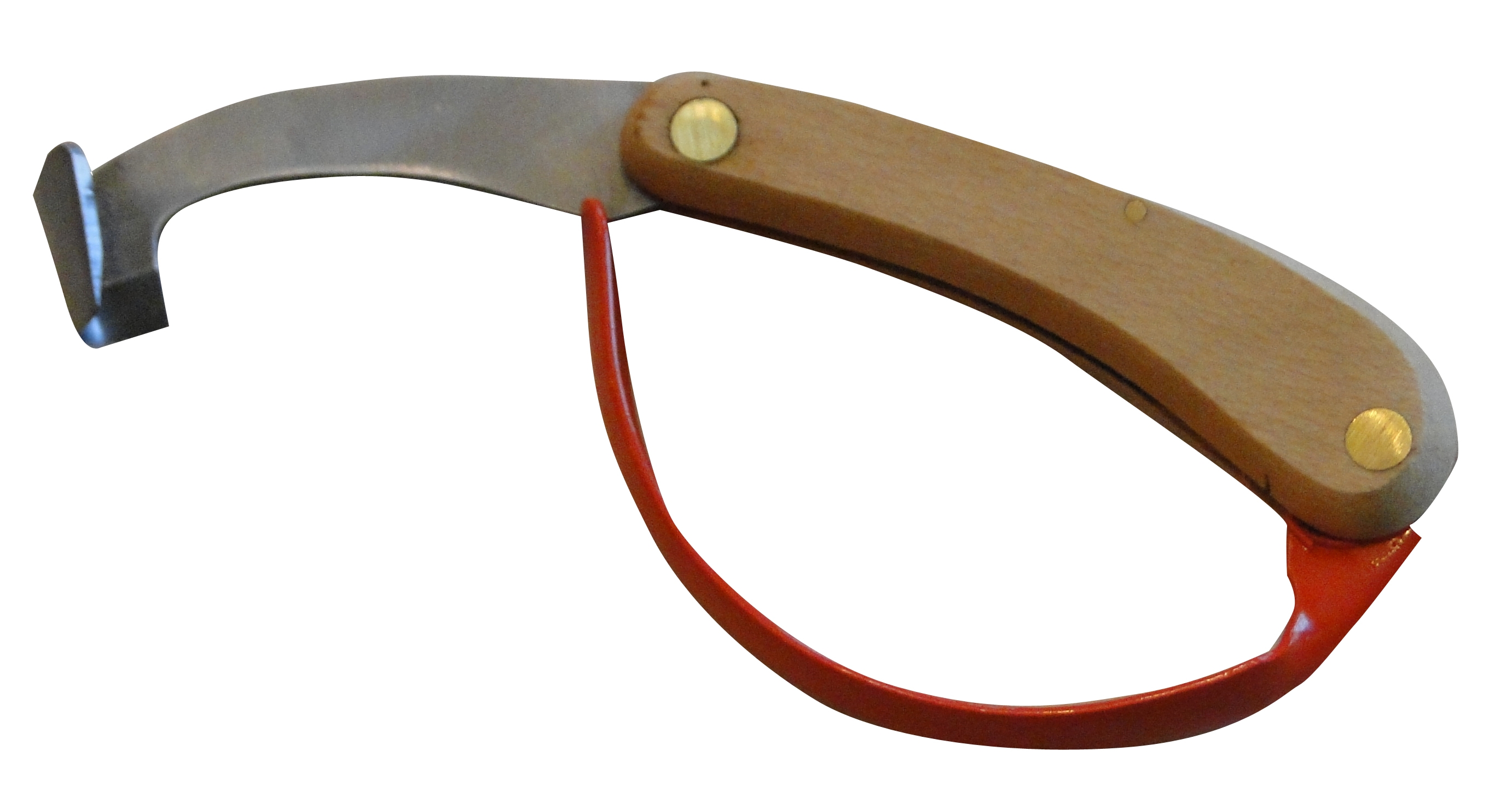Pliante avec ressort intégré pour la maintenue de la lame. Manche bois. Garde de protection orange : évite de s'écorcher les doigts lors de l'utilisation. Poids 120g.