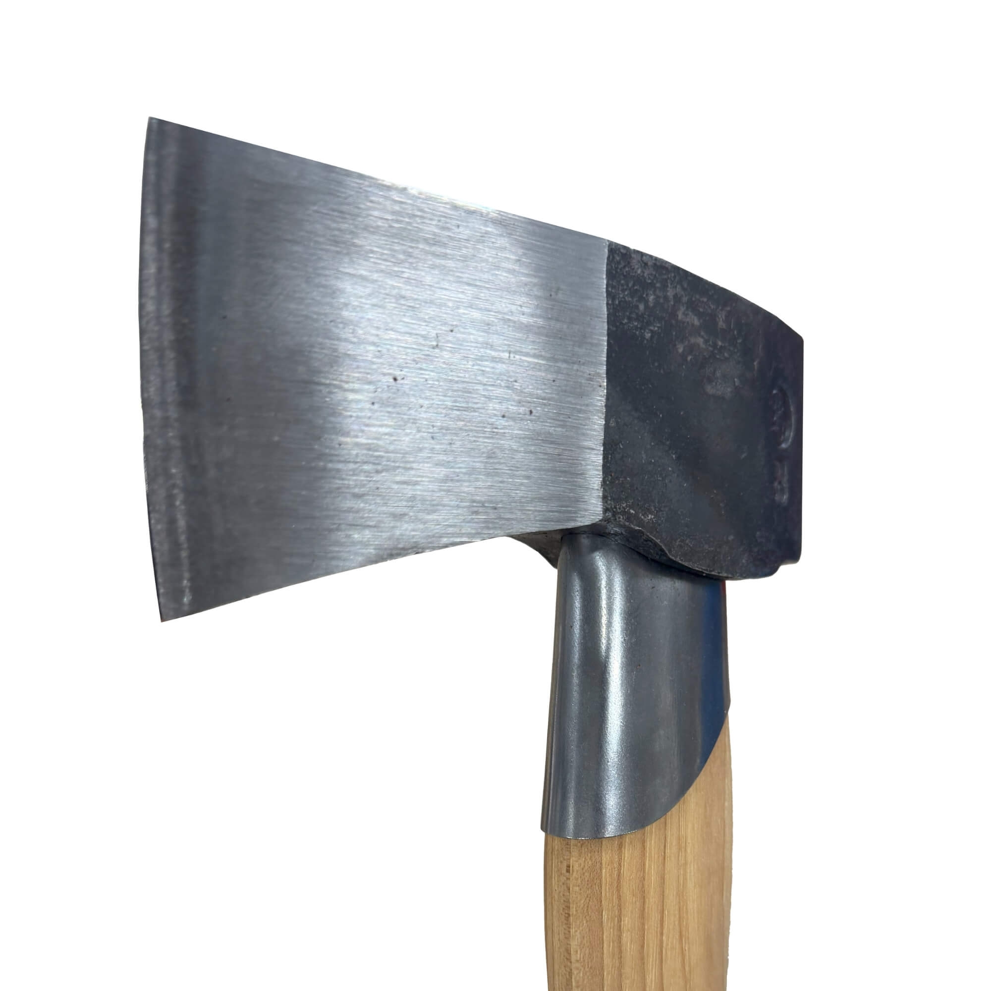 Le manche en bois sélectionné pour sa résistance et sa stabilité est protégé par un renfort métallique ingénieux. Cette protection prévient les dommages lors des frappes déviées ou quand la hache traverse entièrement la bûche, garantissant ainsi une longévité exceptionnelle à l'outil.