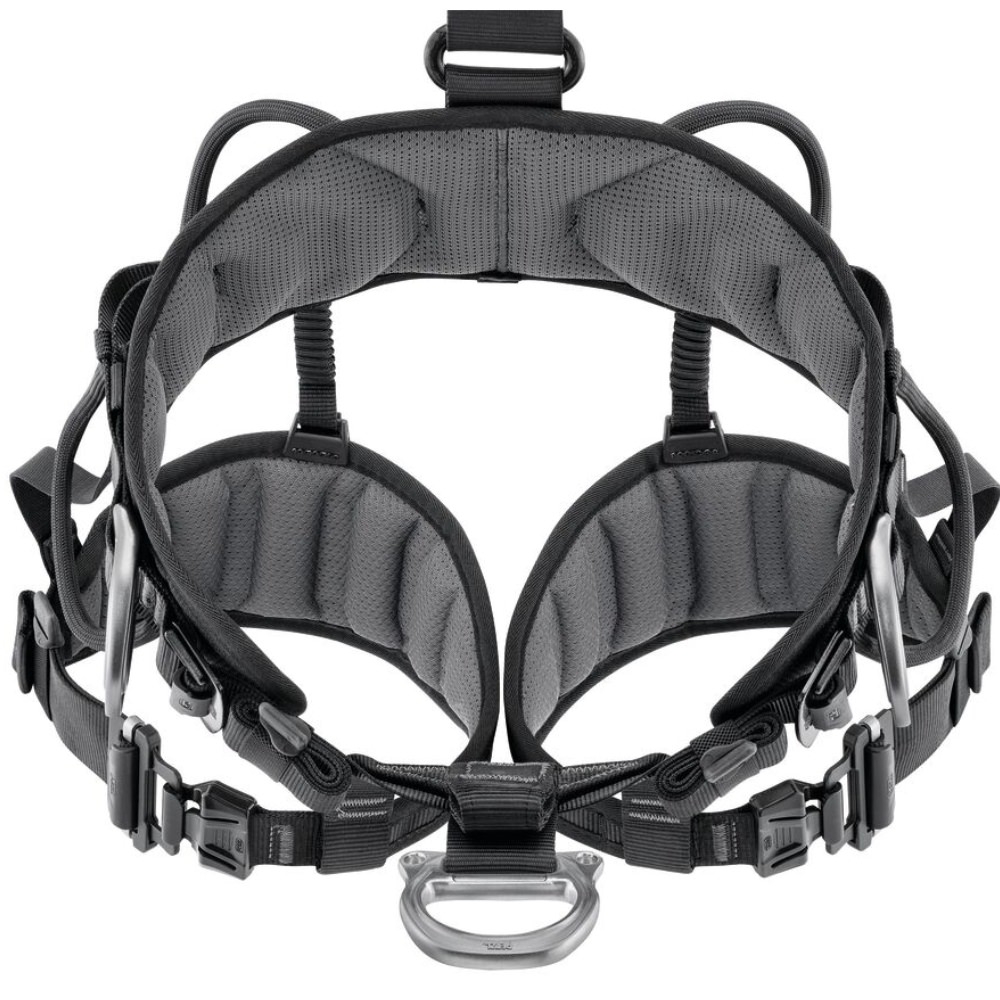 Les points latéraux métalliques, repliables lorsqu’ils ne sont pas utilisés, sont prévus pour connecter une longe de maintien à double. Il dispose également d’un point sternal et d’un point dorsal pour l’arrêt des chutes, ainsi que d’un point à l’arrière de la ceinture pour une longe de retenue.