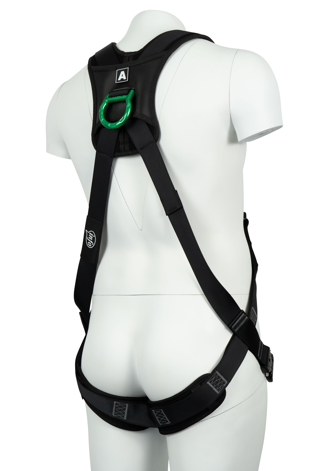 Le bMOTION Light est conçu pour supporter jusqu’à 150 kg, incluant le poids de l'utilisateur et de son équipement. Il est doté de deux points d’attache de couleur verte, clairement identifiés : un positionné sur le sternum, l’autre dans le dos. Ces deux ancrages sont réservés à l’ajout d’un système d’arrêt de chute, comme une longe avec absorbeur d’énergie ou une ligne de vie. Ce code couleur vert permet de repérer rapidement les zones de connexion principales, évitant ainsi toute mauvaise manipulation lors de l’installation du harnais.