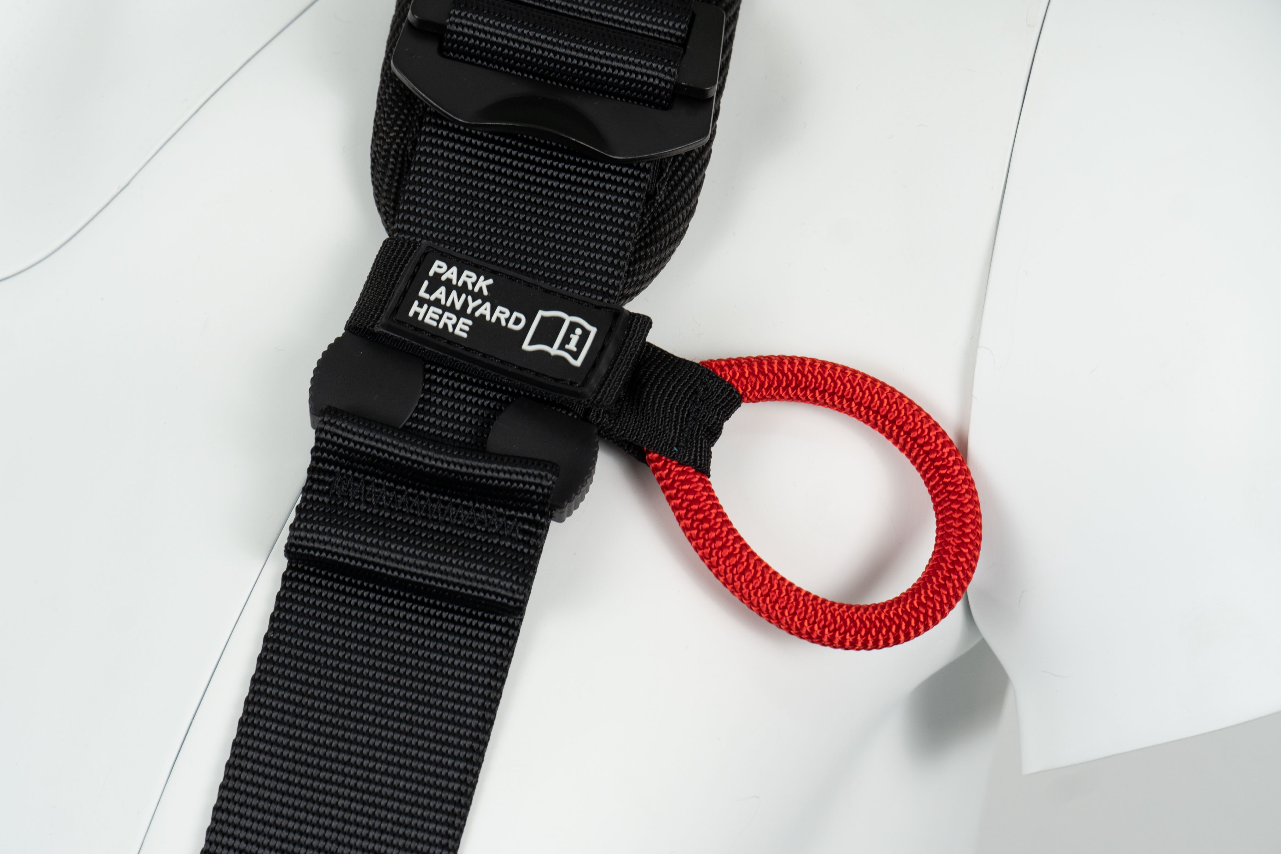 Pour renforcer encore la sécurité, le harnais intègre un indicateur de chute à proximité de chacun de ces points d’attache. Ce dispositif permet de vérifier en un coup d’œil l’intégrité du harnais : s’il se brise et affiche une étiquette d’alerte rouge, cela signifie que le harnais a subi une chute ou une sollicitation importante, et ne doit plus être utilisé.