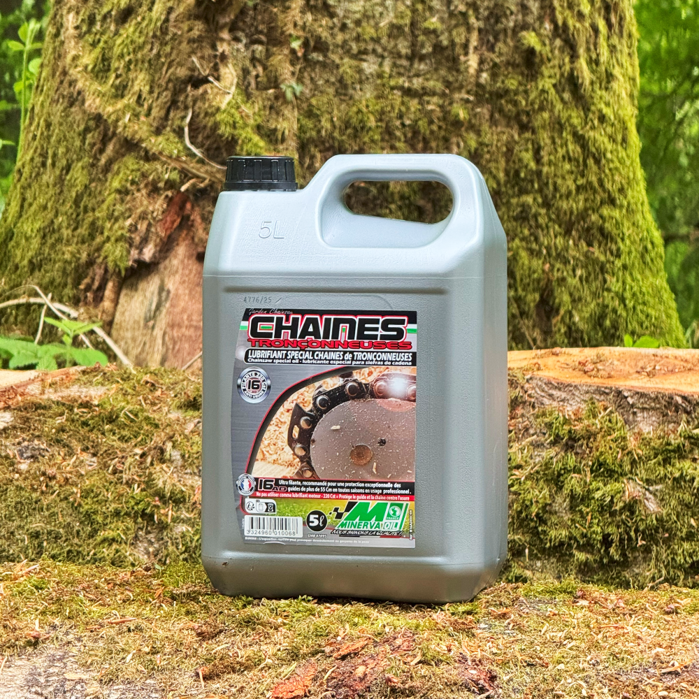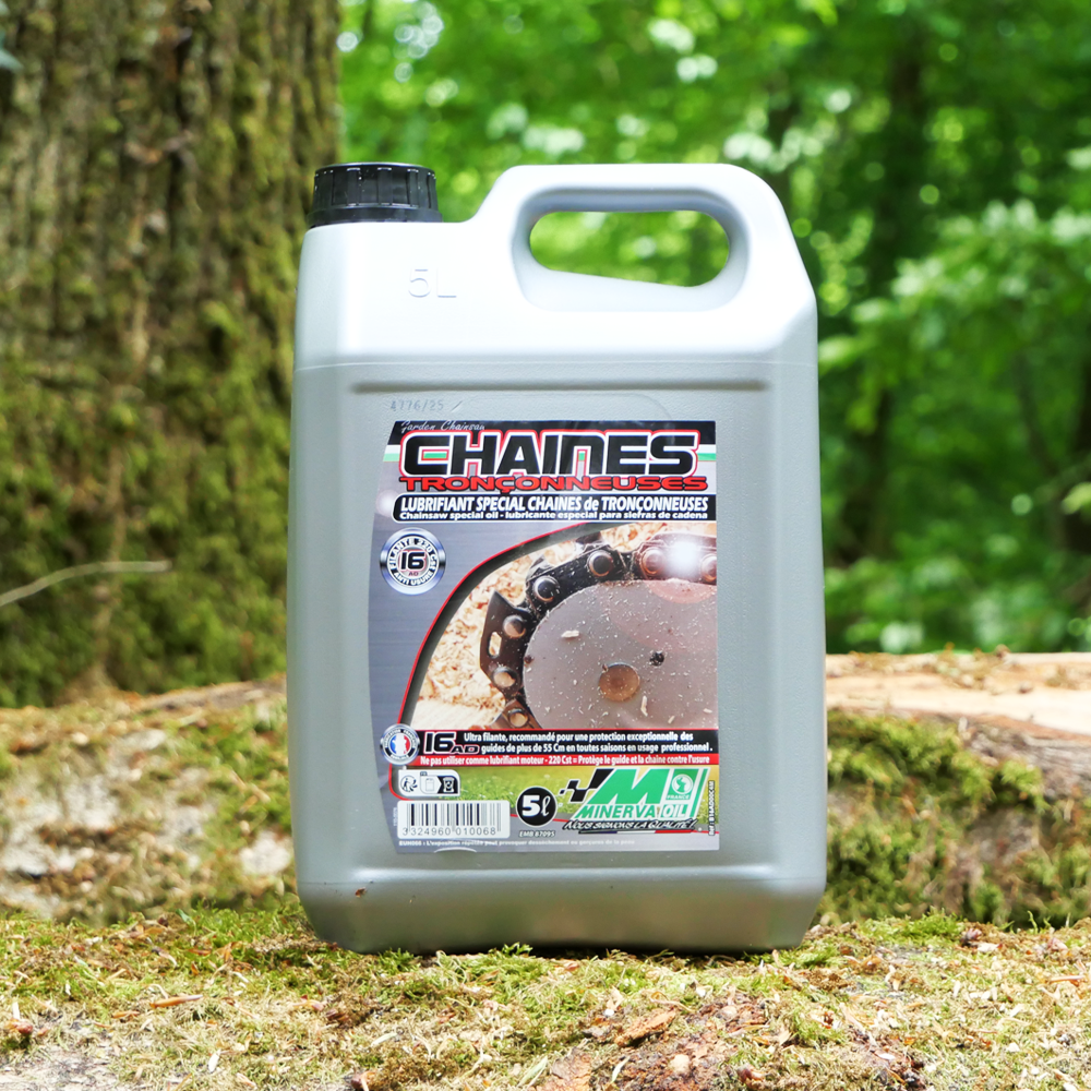 L'huile de chaîne Minerva 14/16AD, en bidon de 5 litres, est un lubrifiant haute performance conçu pour les professionnels du bucheronnage et de l'élagage.