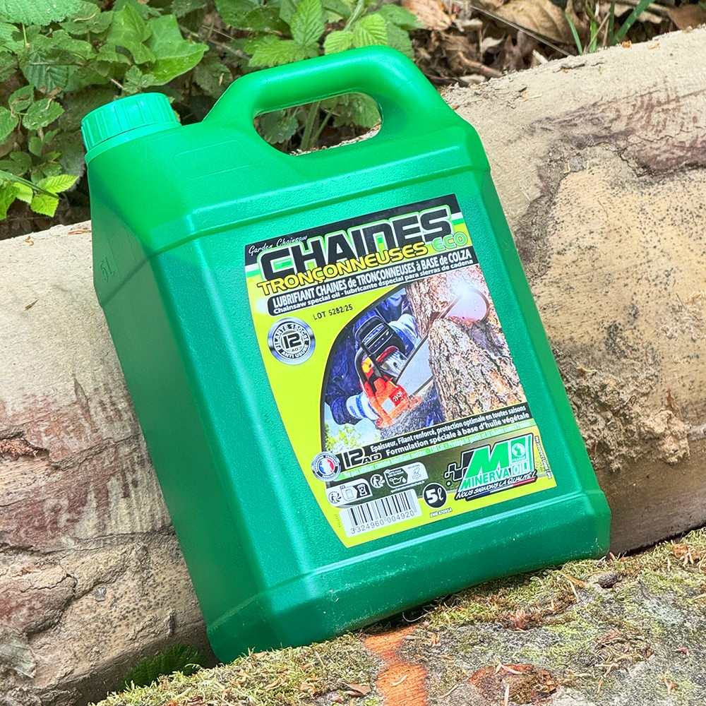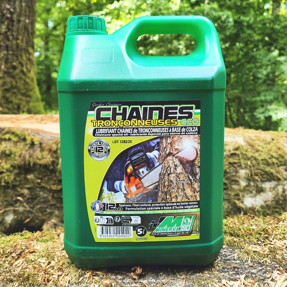 Pensée pour les professionnels du bucheronnage et de l’élagage engagés dans une démarche respectueuse de l’environnement, l’huile de chaîne Minerva ECO ATTITUDE 12AD est une solution de lubrification écologique haut de gamme. Conditionnée en bidon pratique de 5 litres, elle offre un excellent compromis entre autonomie et maniabilité pour les chantiers quotidiens.