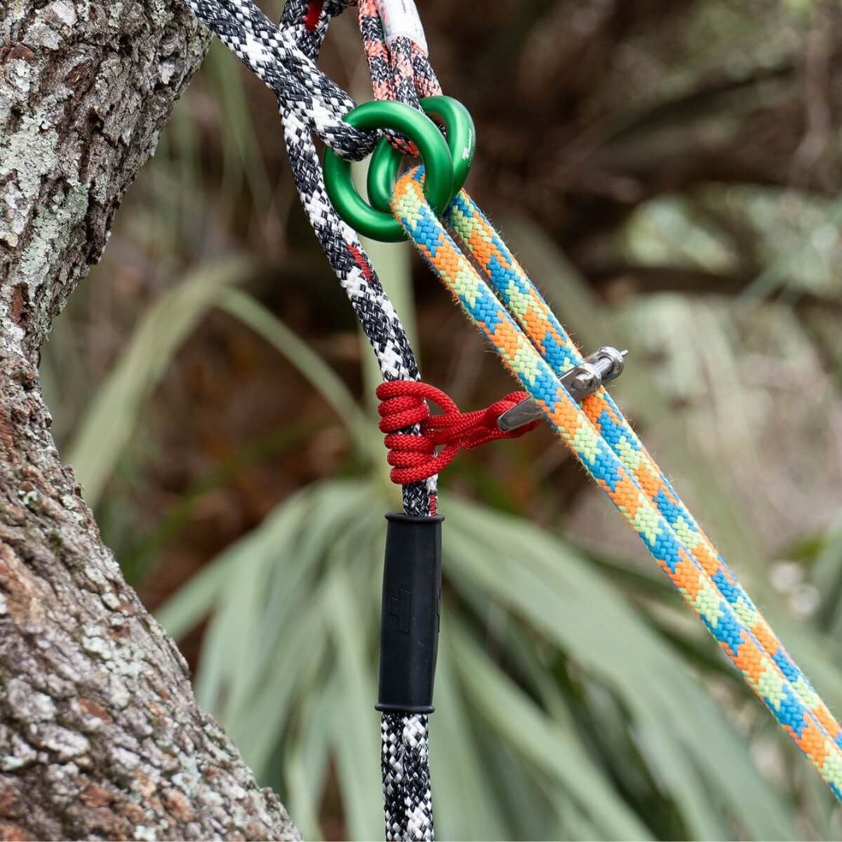 Des points d'ancrage au sol et aériens, des fausses fourches, des redirections, le kit multiTOL ring offre des fonctionnalités tout-en-un pour vos travaux, vous offrant une grande liberté de mouvement dans les arbres durant vos activités d'arboriste.