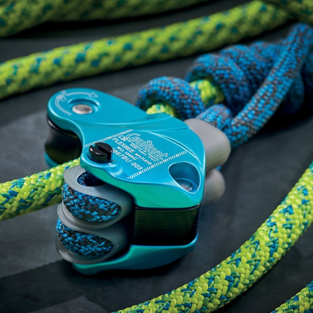 La conception textile repose sur une corde 32 fuseaux de 11,5 mm, combinant une gaine en polyester à une âme en polyamide X-Braid. Ce duo garantit à la fois résistance à l’abrasion, souplesse d’utilisation et excellent maintien des nœuds au fil du temps. Certifiée avec un nœud autobloquant Distel à 5 tours ou Valdotain 4+2 en corde Phoenix 8 mm de 70 cm, la Flexbee assure une tenue fiable et un coulissement fluide dans toutes les situations de travail.