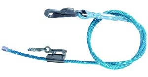Longe de maintien en polyester diamètre 14mm armée de câbles acier. Equipée d'un tendeur à mâchoires en acier inoxydable et d'un mousqueton à double sécurité.