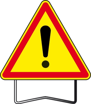 Panneau de danger temporaire classe 1 en métal galvanisé de 1 mm d'épaisseur. Livré avec 2 sacs de lestage à remplir avec du sable ou des gravas.