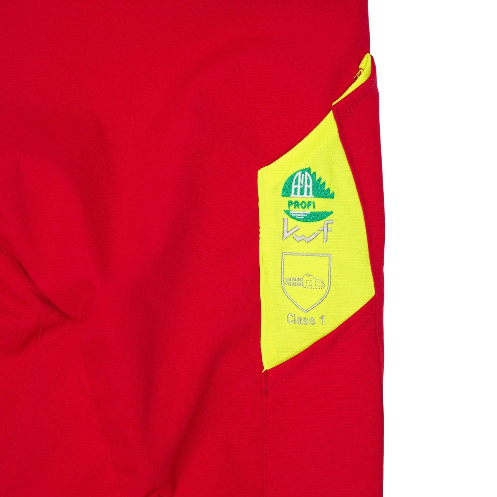 Les poches cargo et téléphone, protégées par des rabats double pli, permettent de conserver les outils et effets personnels à l’abri de la sciure. Un système élastiqué empêche les copeaux de pénétrer dans les chaussures, tandis que les bandes réfléchissantes renforcent la sécurité lors des interventions près des routes ou en fin de journée.