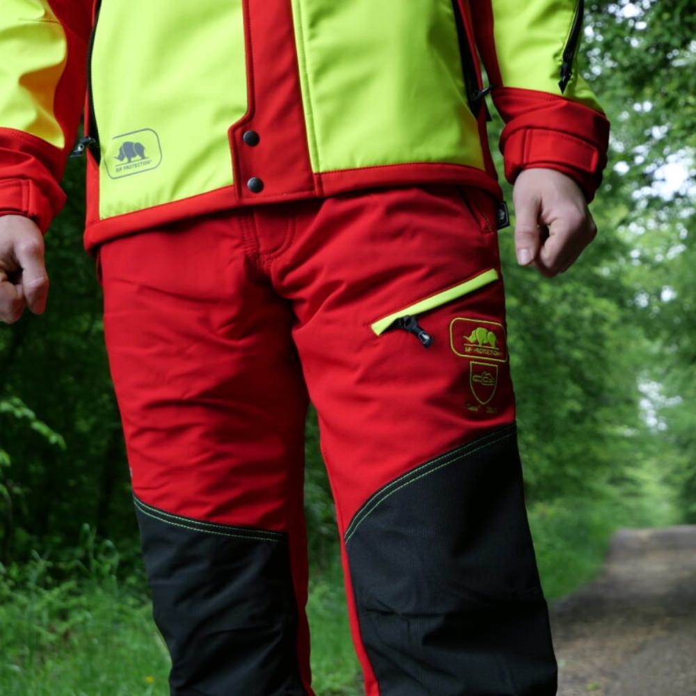 Fermeture principale avec agrafe / œillet, ainsi qu'un bouton-pression. Le pantalon Ninja est doté d'une taille élastique avec des passants de ceinture et trois passants pour bretelles. Ce modèle de pantalon anti coupure comprend une bavette dorsale pour une utilisation confortable.