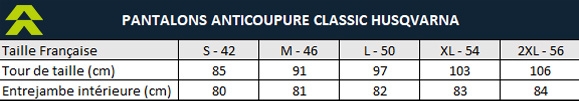 Retrouvez ce pantalon anti coupure Classic HUSQVARNA sur notre site internet LE BESSON dans ces différentes tailles :