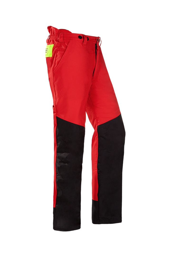 Pantalon anti-coupure EN 381-5 classe 1 (20 m/s). Muni d’un tissu extérieur très robuste et bi-élastique. Renforcé aux endroits stratégiques. Taille élastiquée avec passants pour ceinture et boutons pour bretelles. Bavette dorsale. Couture renforcée à l’entrejambe.