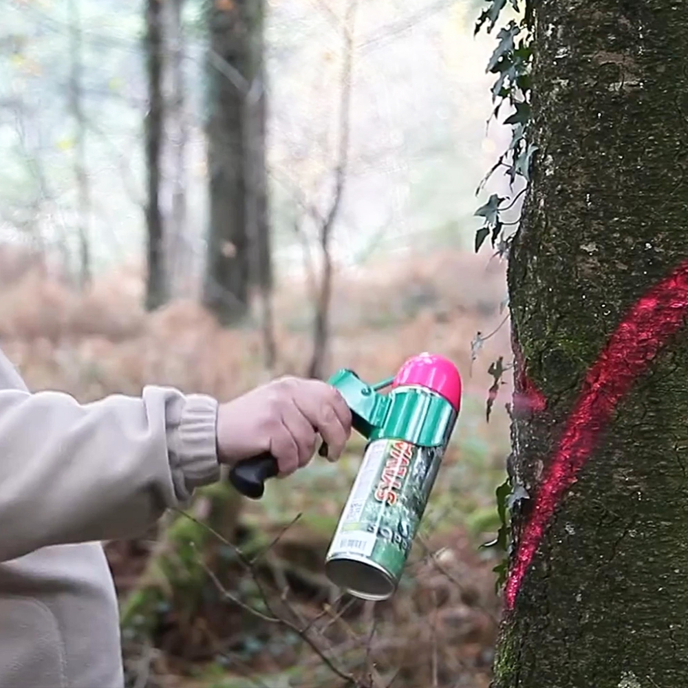 Idéale pour la gamme de d'aérosols de peinture de marquage Fluo Marker Soppec. Retrouvez ces traceurs forestiers dans les produits associés.
