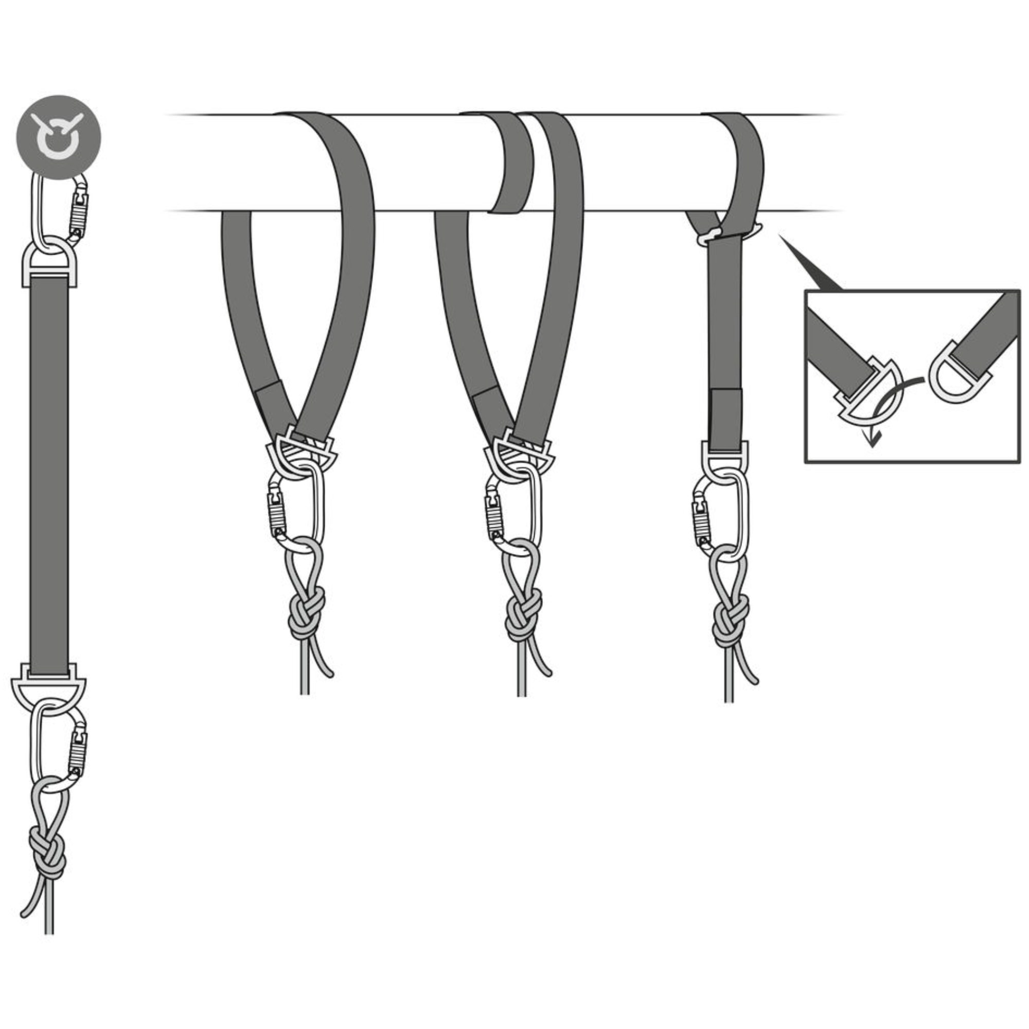 Chaque sangle est conçue à partir d’un textile haute résistance à l’abrasion, capable de supporter les contraintes mécaniques fréquentes en environnement vertical. Les boucles d’extrémité, de tailles différentes, permettent une grande liberté d’installation, tout en assurant un passage facile du mousqueton ou du connecteur utilisé.