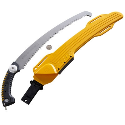 Scie Silky à lame courbe 360 mm. Livrée avec un étui qui s'attache à la jambe : idéal pour transporter votre scie sans aucune gêne dans tous vos travaux d'élagage. Lame interchangeable.
