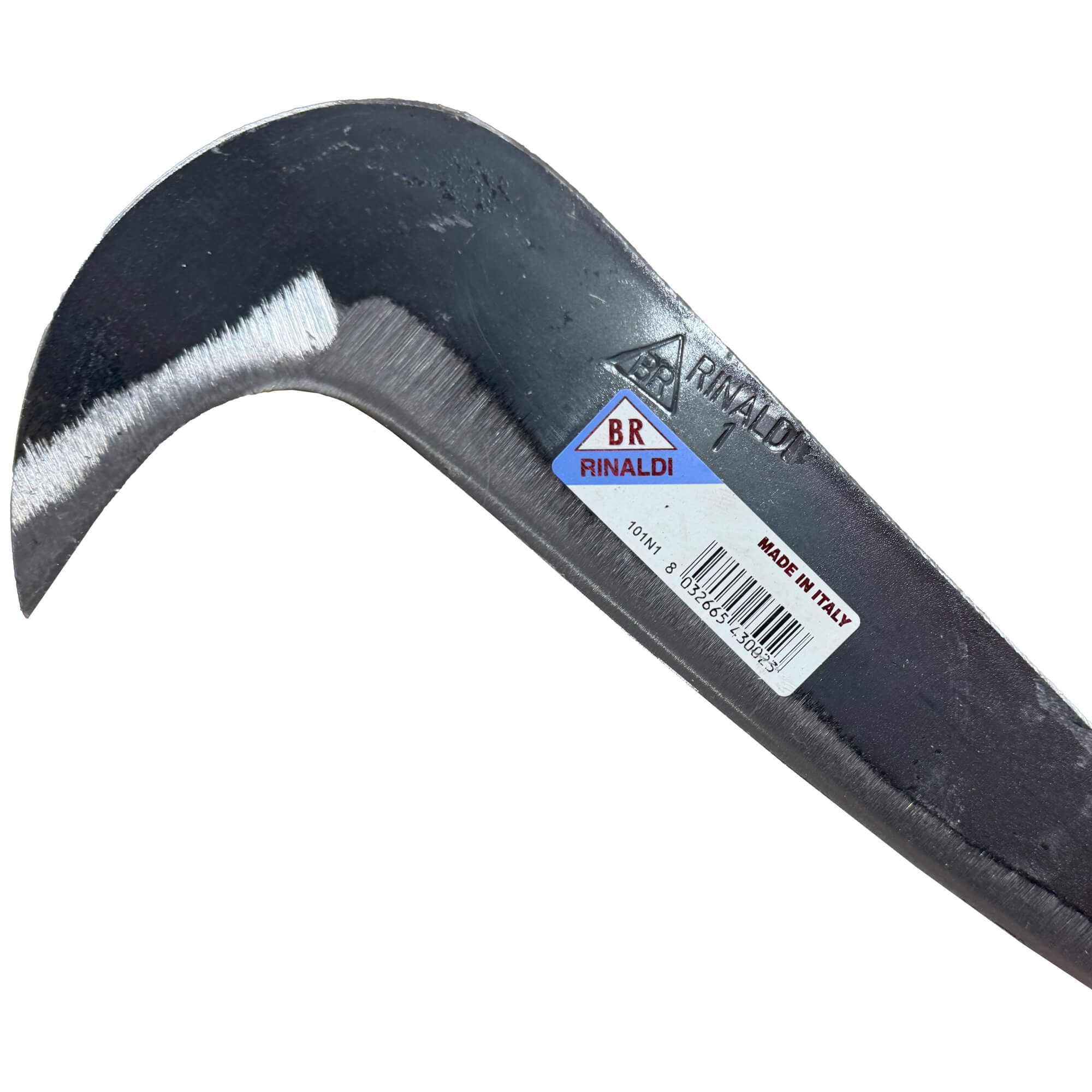 Sa lame de 25 cm en acier trempé bénéficie d'un affûtage manuel méticuleux, garantissant un tranchant remarquable et une durabilité à toute épreuve. Le processus de trempe spécifique utilisé par Rinaldi confère à l'acier une résistance exceptionnelle, permettant à la serpe de conserver son tranchant même après une utilisation intensive.