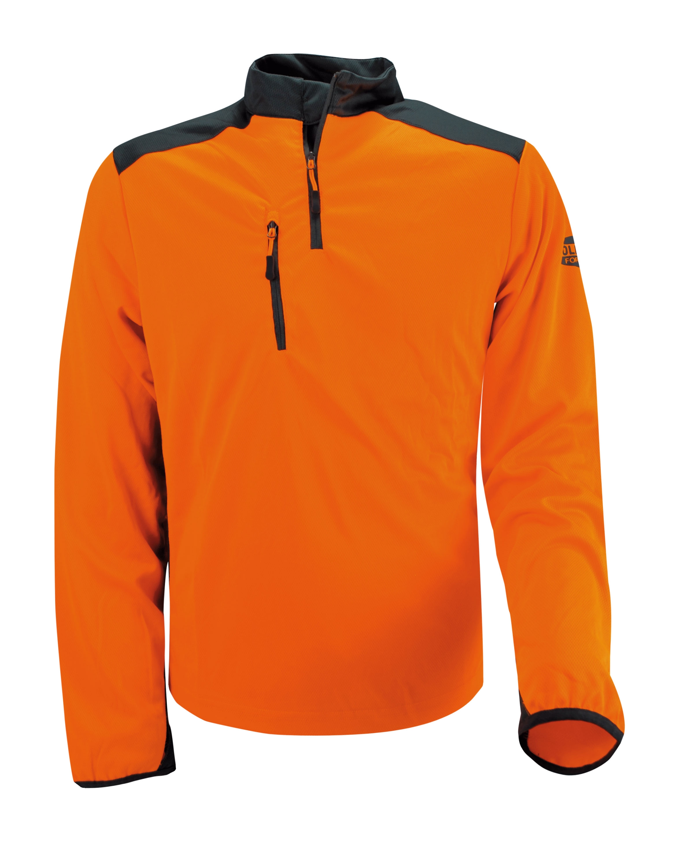 Sa couleur orange haute visibilité permet d’être facilement repéré en milieu forestier, augmentant ainsi la sécurité de l’utilisateur. Des empiècements gris ont été intégrés aux extrémités pour limiter les traces d’usure et de saleté. Une poche zippée discrète située sur la poitrine offre un rangement pratique pour de petits objets, tout en conservant une ligne élégante et professionnelle.