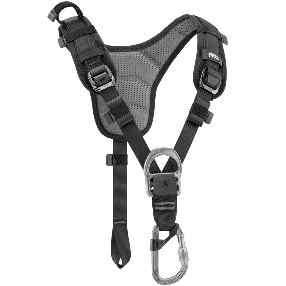 Le torse TOP s’installe simplement à l’aide d’une tête d’alouette à l’arrière du harnais et d’un connecteur intégré à l’avant. Une sangle Velcro ajustable, positionnable à droite ou à gauche, permet de maintenir un absorbeur d’énergie de type ASAP’SORBER en toute sécurité.