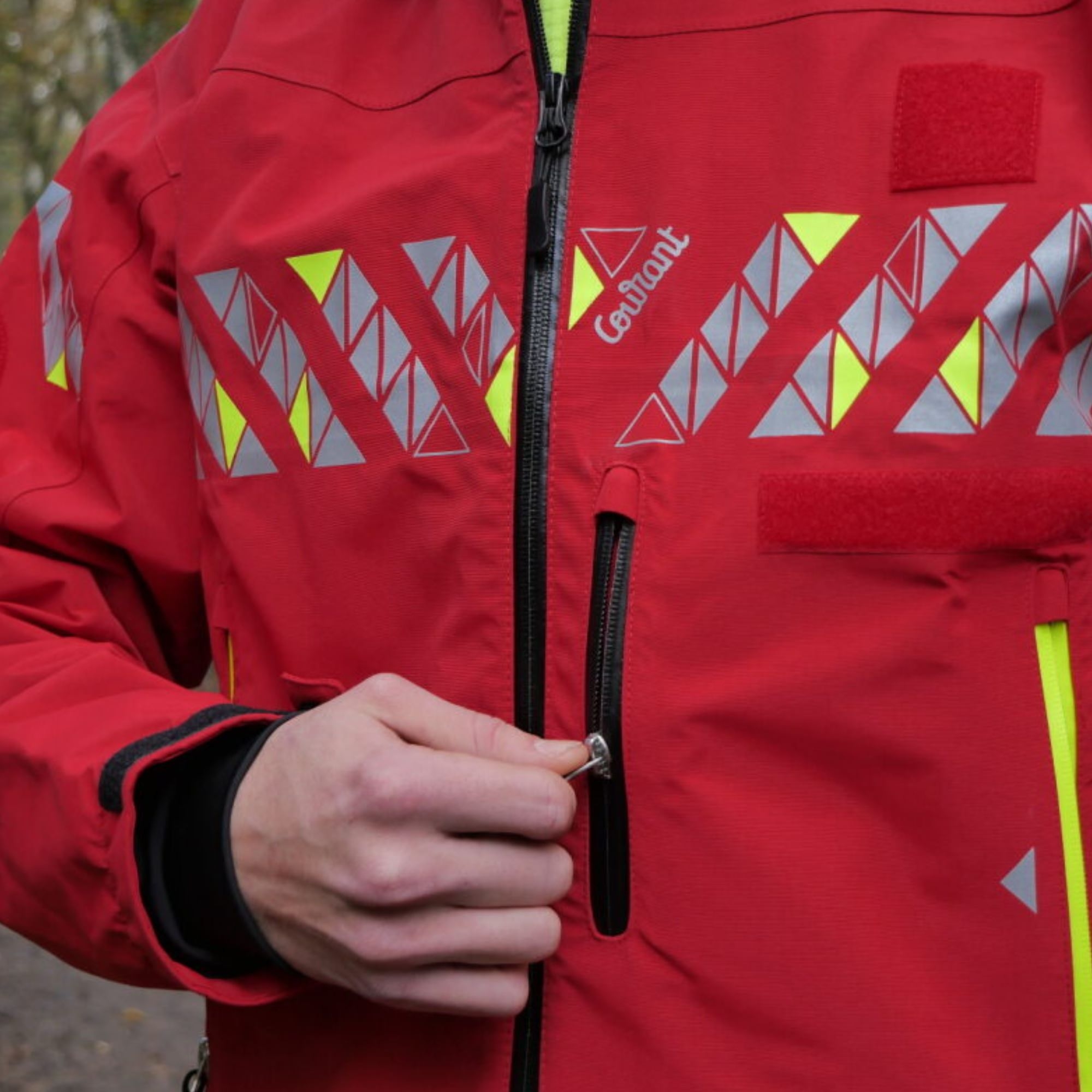 Dotée de 2 poches latérales et 1 poche poitrine pour le téléphone qui sont accessibles même avec le port d’un baudrier et toutes imperméables.