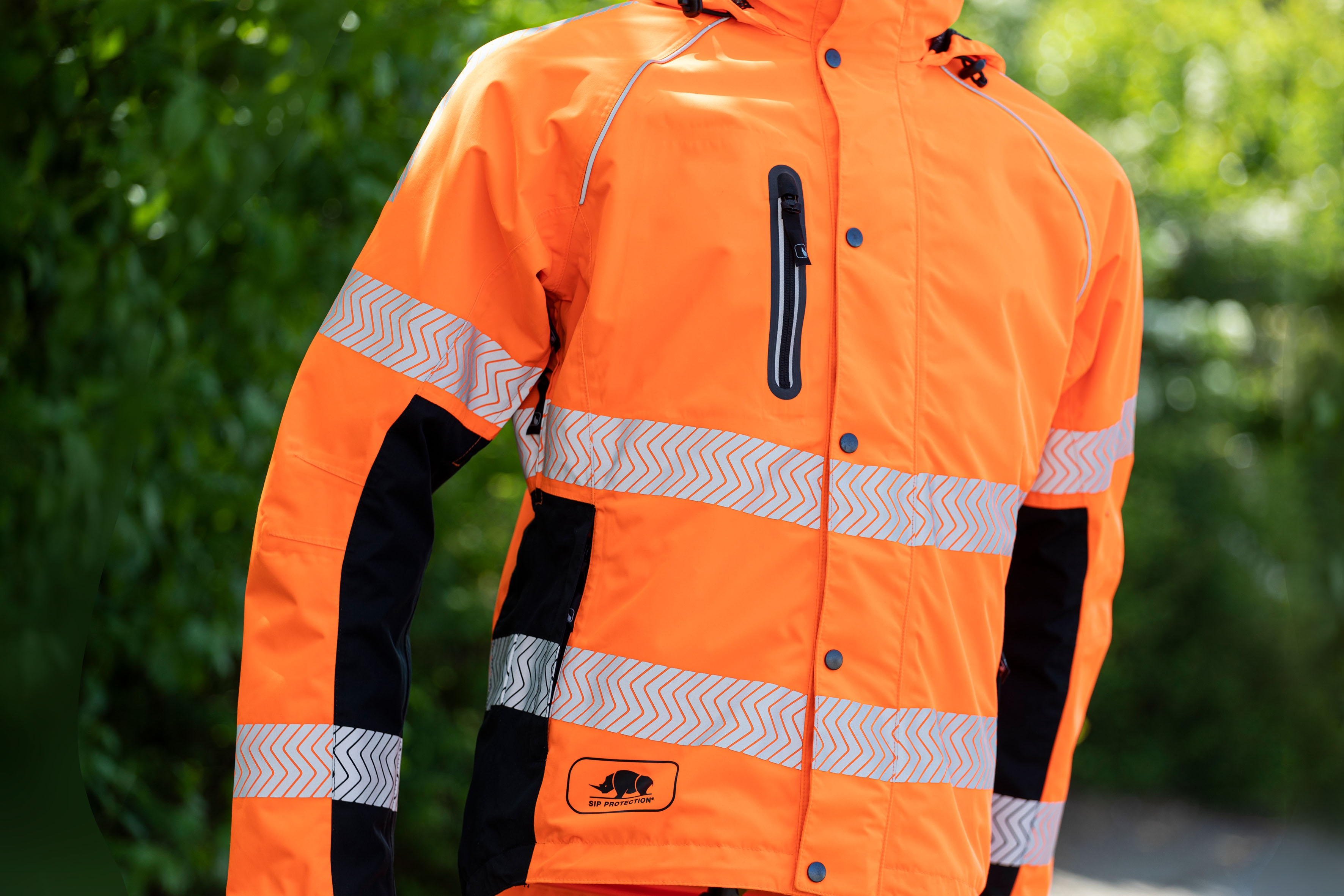 Grâce à sa couleur orange fluo et ses bandes rétro réfléchissantes, la nouvelle veste anti-pluie KEIU est certifiée de la norme EN ISO 20471 Classe 3, ce qui est la norme la plus élevée du niveau de visibilité d'un produit.