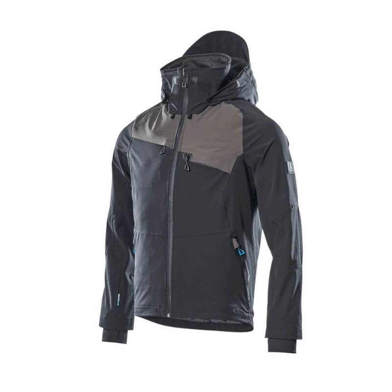 Affrontez les intempéries avec style grâce à la veste de pluie Advanced MASCOT en Noir et Gris, un incontournable qui marie sophistication et performance. Cette veste de travail imperméable, conçue pour être bien plus qu'un simple vêtement de pluie professionnel, est une déclaration d'élégance tout en assurant une protection optimale.