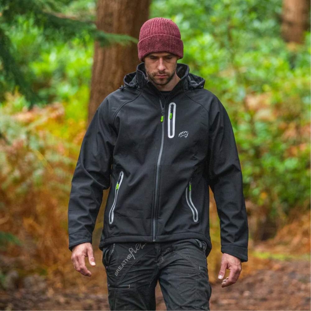 La veste softshell Caiman noire est fabriquée dans un tissu respirant et déperlant, assurant confort et protection contre la pluie légère. Elle dispose d’une capuche amovible résistante à l’eau avec cordon de serrage, ainsi qu’un ajustement à la taille pour un maintien optimal.